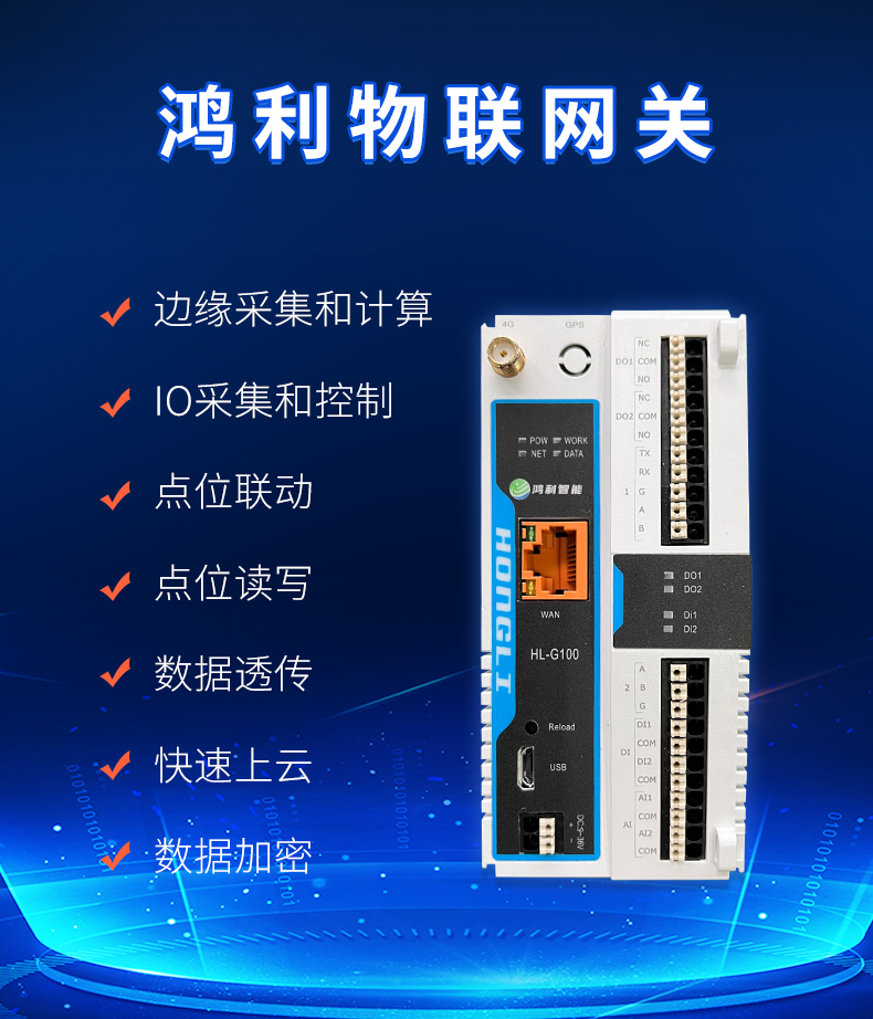 鴻利HL-G100 物聯網關產品是一款高性價比綜合性可拓展數傳網關,集成了邊緣采集和計算,IO采集和控制,點位聯動,點位讀寫,數據透傳,快速上云和數據加密等多種核心功能。產品采用 Cortex-M7 內核,主頻高達 400MHz;工業級設計,數據傳輸穩定,同時支持網口和 4G 網絡,通信方式更加多樣化。