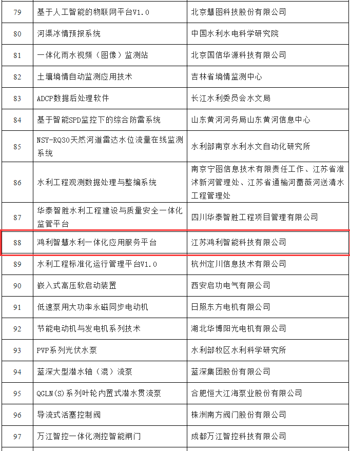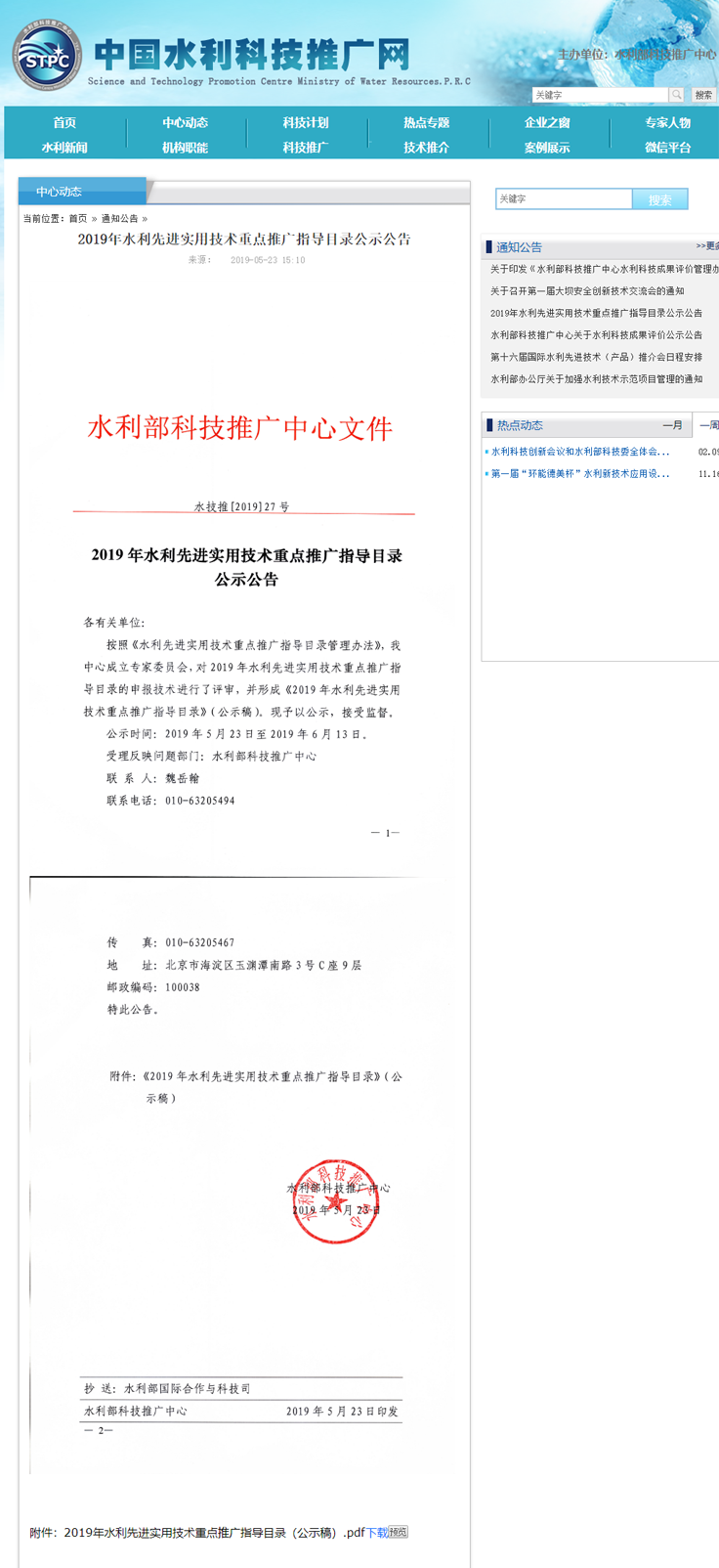 恭喜公司“鴻利智慧水利一體化應用服務平臺”產品通過水利部2019年水利先進實用技術重點推廣指導目錄。 感謝水利部對鴻利公司的產品認可,公司將繼續努力研發,精力求精,提升公司產品技術含量。 公示網址://www.cwsts.com/15851.html