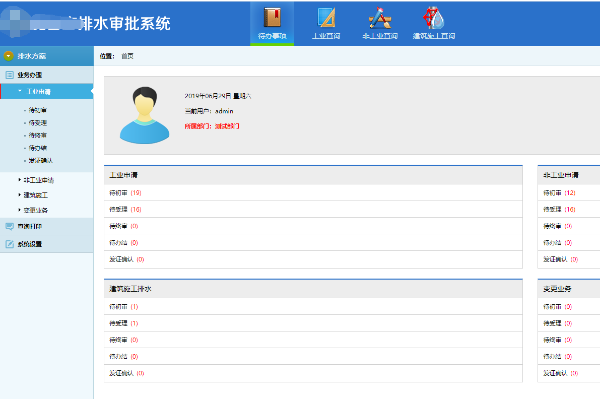 (3)工業類數據查詢:查詢工業類排水方案申報的記錄。