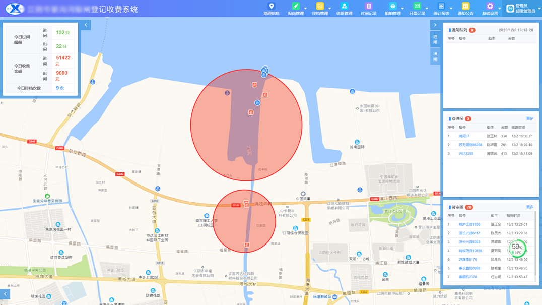 系統實現了過閘船舶申報、過閘船舶登記、閘室自動排擋、船籍數據管理,支持用微信公眾號的方式進行報到、收費,做到了不上岸報到,以及船舶過閘過程的全程監督,且過閘流程快捷、方便、快速管理。